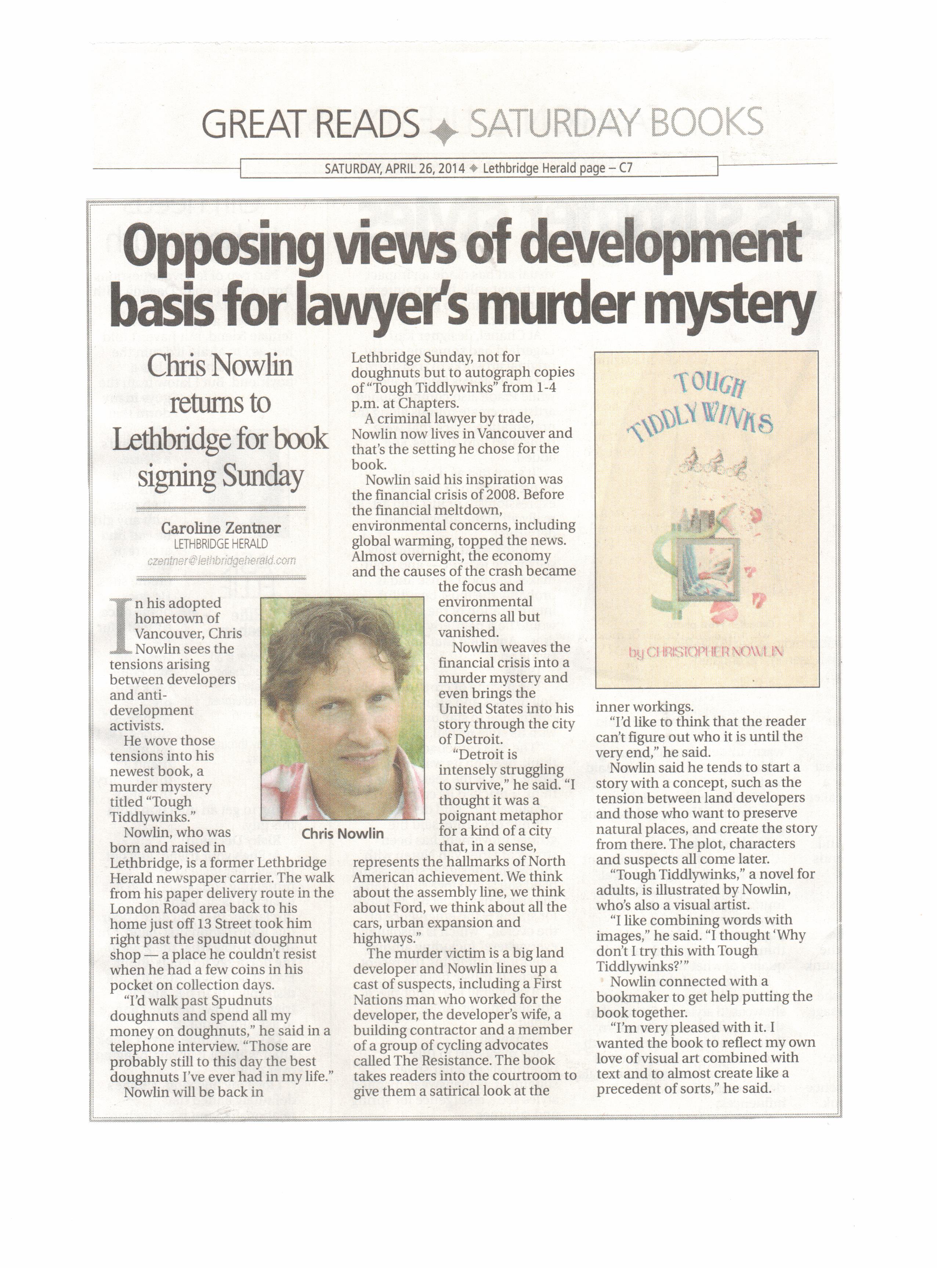 The Lethbridge Herald published the following interview with Christopher Nowlin on April 26, 2014.
